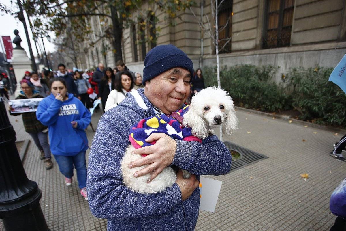 El terrible caso Simón, perrito que según testigos fue masacrado por un grupo de «Punkis» que se encontraba en el sector de Trinidad cerca de Vicuña Mackena en La Florida, motivó que este sábado se congregaran animalistas en Baquedano.